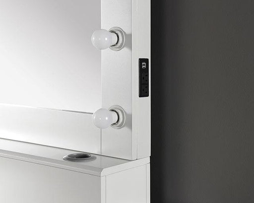 FOA EastBeautifully designed this side table offers a hidden drawer and open shelf. Comes in a white finish.