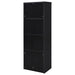 This contemporary media tower combines functionality and modern design in a sleek black finish. Built from durable engineered wood with a scratch-resistant laminate veneer, it features three open shelves for organizing media devices, books, or decor. A bottom cabinet offers concealed storage to keep clutter at bay. Its tall, clean-lined silhouette provides vertical storage, perfect for maximizing space in living rooms, home offices, or entertainment areas. Key Features: • Modern media tower in a sleek black finish • Three open shelves for versatile storage and display • Bottom cabinet offers concealed organization space • Scratch-resistant, eco-friendly laminate veneer surface • Crafted from engineered wood for lasting durability • Compact, tall design ideal for small or narrow spaces