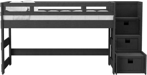 Elements International Cali Kids Full Junior Loft Bed with Staircase in Sleek Gray
