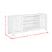 The Eleanor 70"� TV Stand with Sliding Doors is a tasteful addition to your entertainment space. Made of durable engineered wood and accented with a dynamic chevron pattern, two cabinet doors slide to reveal storage space with adjustable shelving. Cable holes are conveniently integrated into the back panel to simplify installing electronics and reduce clutter caused by cords, while practical block feet offer a stable foundation. A smooth veneer finish simplifies maintenance while increasing this piece's longevity, ensuring that the Eleanor 70"� TV Stand will withstand the test of time in your living space. Features: • Made from Durable Engineered Wood • Chevron Pattern Adds Visual Interest • Sliding Doors Reveal Adjustable Shelves • Cable Holes Help to Organize Wires • Block Feet Offer Sturdy Foundation • 70"W x 16"D x 26"H • Due to Lighting, Product Color May Vary Slightly from Images Dimensions: Depth: 16.0" x Width: 70.0" x Height: 26.0" Weight: 90.0 lbs.