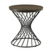The Terri End Table infuses a playful yet sleek attitude into your space, and add a pop of rustic farmhouse to your living room with this distinctive end table. This eye-catching table design showcases a twisted metal base in a black finish with a contrasting rounded wood top. The combination of these materials play into the industrial farmhouse look that this table was inspired by. Features: • Round End Table • Twist Design Metal Base • Powder Coated Base • Natural Wood Grain Details on Table Top • Warm Walnut Finish • Industrial Style • Due to lighting, product color may slightly vary from images. Dimensions: Depth: 22.0" x Width: 22.0" x Height: 24.0" Weight: 18.0 lbs.